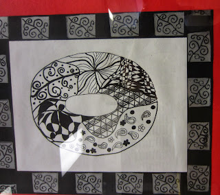 Students had to either design a color wheel wedge slice with four sections and then trace twelve times or they had to draw their guitar body neck and head and divided into twelve sections then divided into four sections.